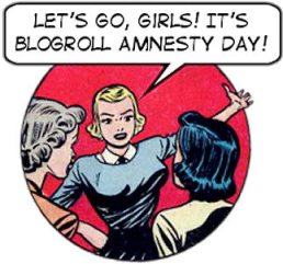 “Another reason I shy away from having a blogroll is that I’d be concerned about leaving people out. Silly, perhaps, but I sometimes feel slightly “miffed” when I notice that someone who I know reads my blog hasn’t listed it in their blogroll. I shouldn’t wish to upset someone else in a similar way!”