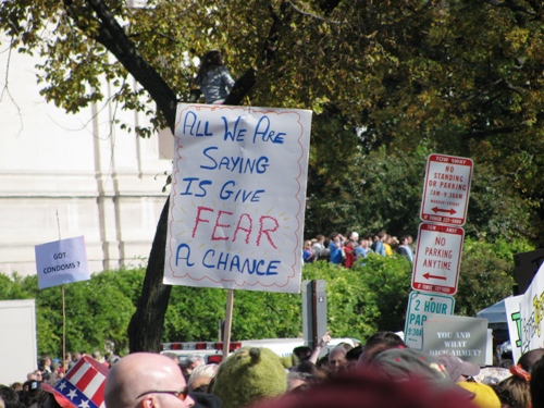 This actually was breaking in spirit with the Rally's intention, but I thought it was funny. I guess it does fit Stephen Colbert's fear rally.